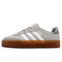 Світло-коричневий верх майстерно доповнений акцентними рожевими елементами, що надає парі сучасності і допомагає виділитися в міському потоці. Широка гума платформа візуально витягує силует, а фірмовий брендинг і деталі бічної панелі зберігають повагу до спадщини оригінальних Samba.